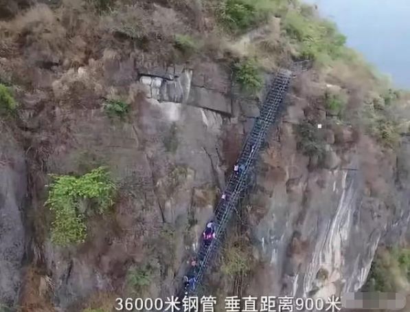 ▲ 要走“天梯”,几乎就是沿着悬崖峭壁攀爬。